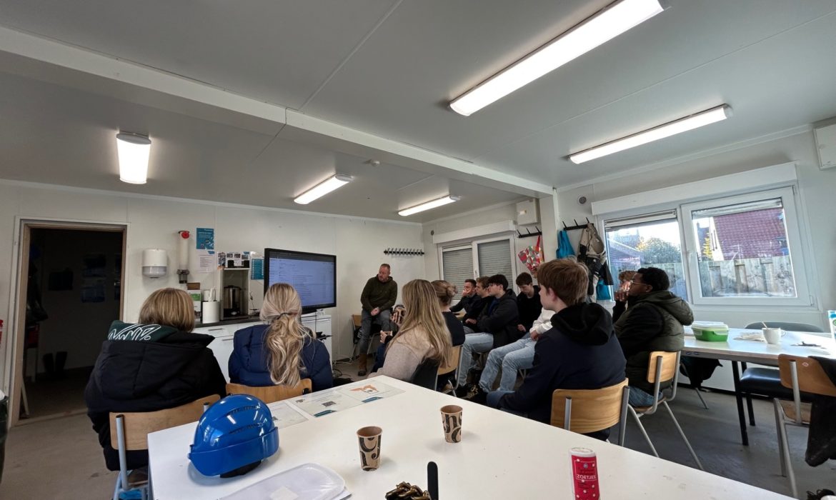 Onze collega’s gaven een rondleiding over het project, vertelden over de verschillende fases van de bouw en deelden praktijkervaringen over duurzaam bouwen, samenwerking op de bouwplaats én veiligheid. De studenten stelden volop vragen en toonden veel interesse in zowel de technische als organisatorische kant van het werk.